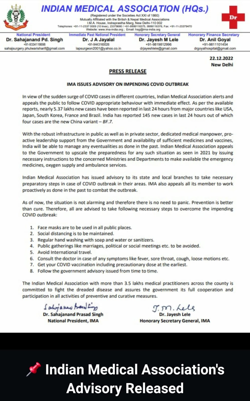 | IMA Advisory | 22-Dec-22 | Indian Medical Association | Advisory | Download | |