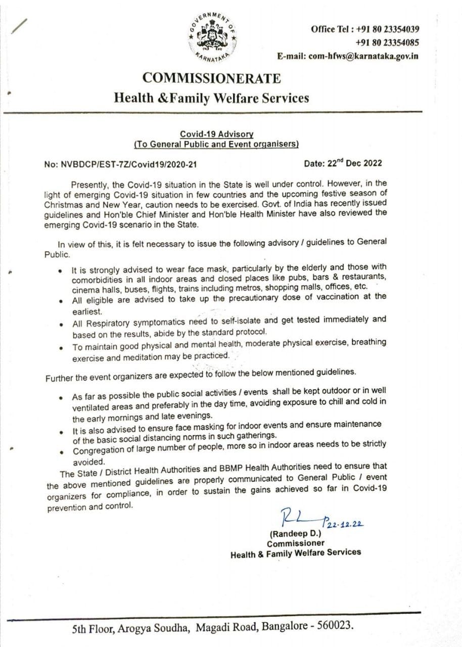 | Revised order issued by Commissionerate of Police, Bengaluru City |