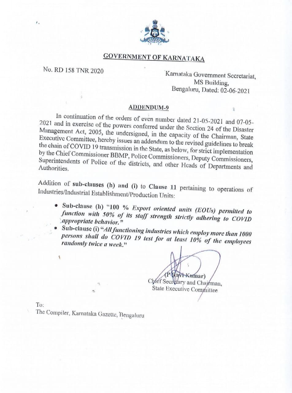Commerce and Industries Department, Government of Karnataka Ref: CI 06 SPI 2020 Dated 24-Mar-2020 |